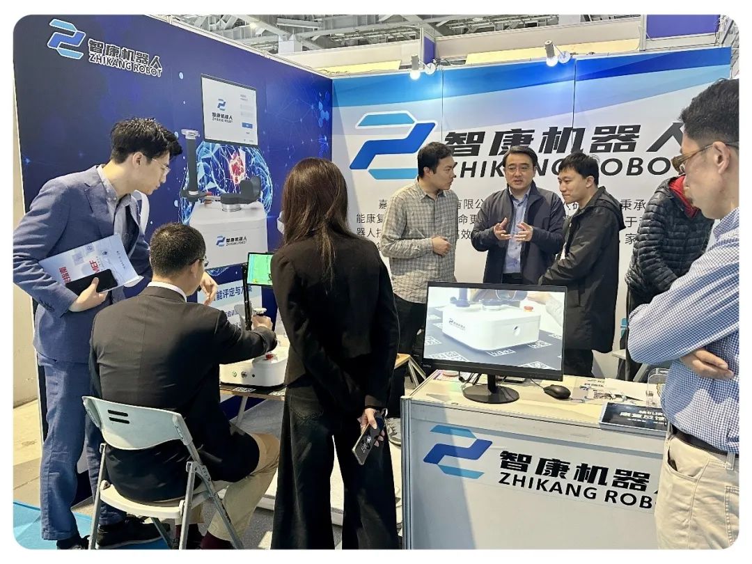 机器人平台孵化企业——智康机器人公司的全周期多场景上肢康复机器人被评为CMEF康养机器人优选产品,上海交大医学院康复JIUYOU.COM九游单春雷院长与太平洋保险一行,好博医疗,招商集团,光大特斯联,上海电信等公司的众多业界领军人物纷纷莅临展台交流体验。