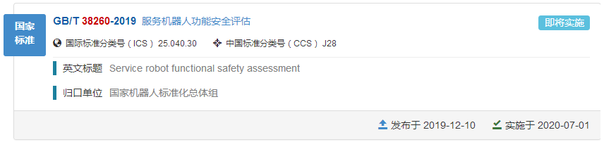 ——GB/T 38260-2019 服务机器人功能安全评估;