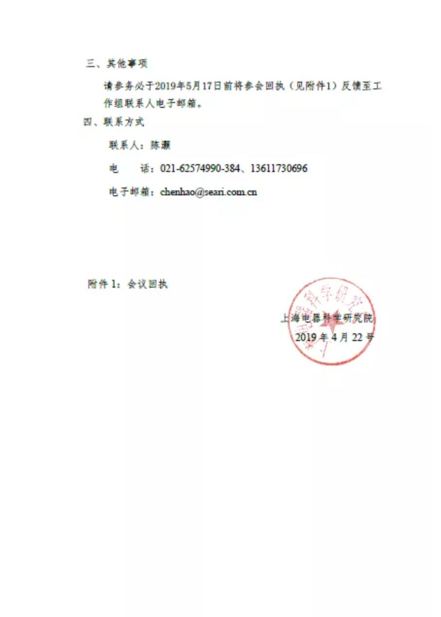 请参务必于2019年5月17日前将参会回执(见附件1)反馈至工作组联系人电子邮箱。